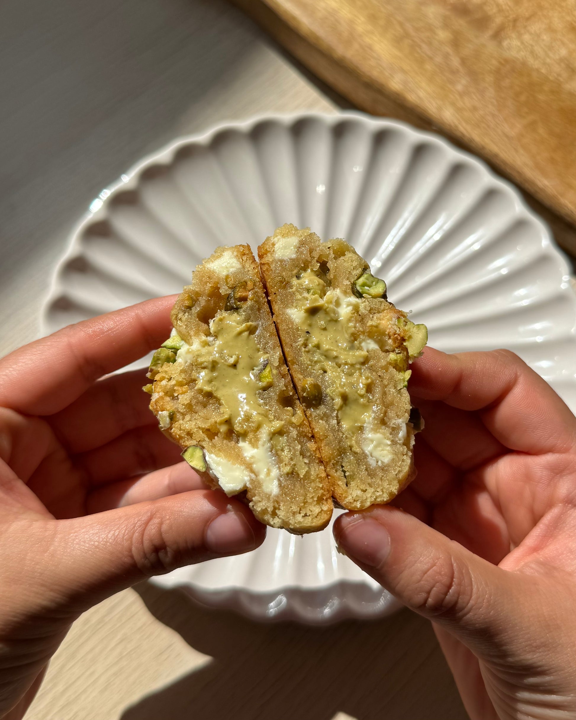 - Cookie chocolate blanco y pistacho rellena de pistacho